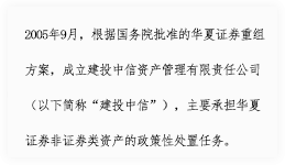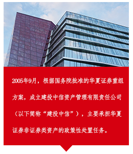 2005年(nián)9月(yuè),根據國(g∑uó)務院批準的(de)華夏證券重組方案,成立建投中信資産管理(lǐ)有(yǒu)限責任公司(以下(xià)簡稱建投中信),主要(yào)承擔華夏證券非證券類資産的(de)政策性處置任務。₩