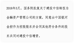 2018年(nián)3月(yuè),國(guó)務院批複關于建投中信轉型為(wèi)金(jīn)融資産管理(lǐ→)公司的(de)方案,同意由中國(guó)銀(yín)河(hé)金(jīn)融控股有(yǒu)限責任公司作α(zuò)為(wèi)控股股東(dōng)并會(huì)同其他(tā)符合條件(jiàn)的(de)股東(dōng)共同對(duì)建投中信增資。